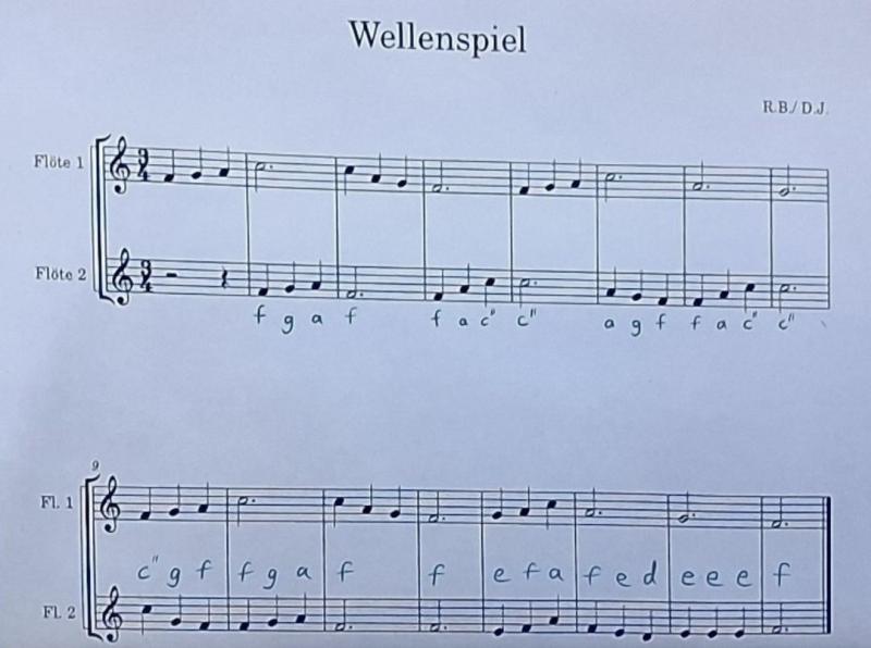In der Flöten-AG lernen wir verschiedene Lieder und wiederholen Töne, die wir in der ersten Klasse gelernt haben. Wir lernen auch neue Töne und spielen manchmal schon mehrstimmig.