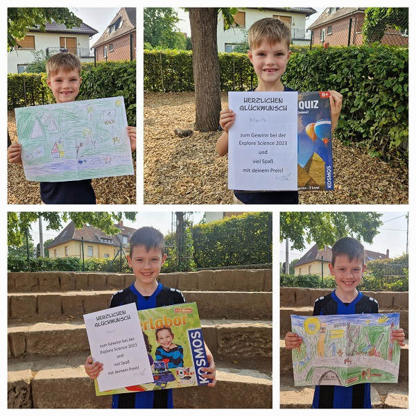 Wenige Tage nach der Verkündung der Platzierungen unternahm die Klasse 1a einen Ausflug zur Explore Science, die in diesem Jahr in Mannheim stattfand. In einem der Zelte wurden die Siegerbeiträge des Malwettbewerbs ausgestellt. Die Kinder staunten nicht schlecht, als sie neben den kreativen Werken anderer Schülerinnen und Schüler auch ihre eigenen Werke entdeckten.